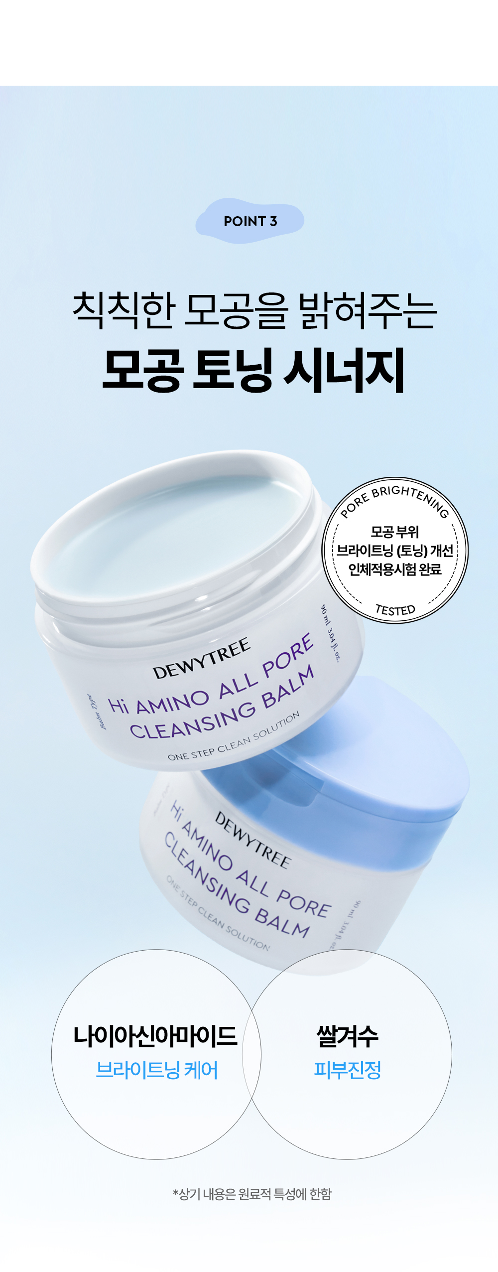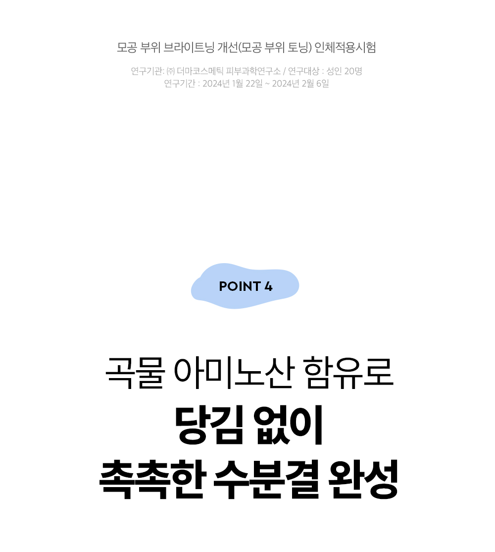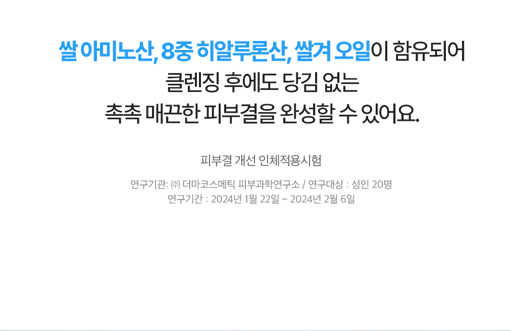 에틸헥실팔미테이트, 솔베스-30테트라올리에이트, 세틸에틸헥사노에이트, 합성왁스, 호호바씨오일, 메도우폼씨오일, 퀸즈랜드넛오일, 카프릴릭/카프릭트라이글리세라이드, 폴리글리세릴-10올리에이트, 실리카다이메틸실릴레이트, 로즈마리잎오일, 정제수, 에틸헥실글리세린, 부틸렌글라이콜, 글루코노락톤, 카프릴로일살리실릭애씨드, 토코페롤, 쌀겨수, 카프릴릴글라이콜, 하이드록시아세토페논, 펜틸렌글라이콜, 구아이아줄렌, 1,2-헥산다이올, 나이아신아마이드, 소듐하이알루로네이트, 만주자작나무수액, 보리지추출물, 수레국화꽃추출물, 마트리카리아꽃추출물, 히아신스전초추출물, 라벤더꽃추출물, 클레리추출물, 프로테아제, 포타슘하이알루로네이트, 쌀아미노산(0.01ppm), 소듐하이알루로네이트크로스폴리머, 소듐아세틸레이티드하이알루로네이트, 하이드록시프로필트라이모늄하이알루로네이트, 하이드롤라이즈드소듐하이알루로네이트, 하이알루로닉애씨드, 하이드롤라이즈드하이알루로닉애씨드, 쌀겨오일 |