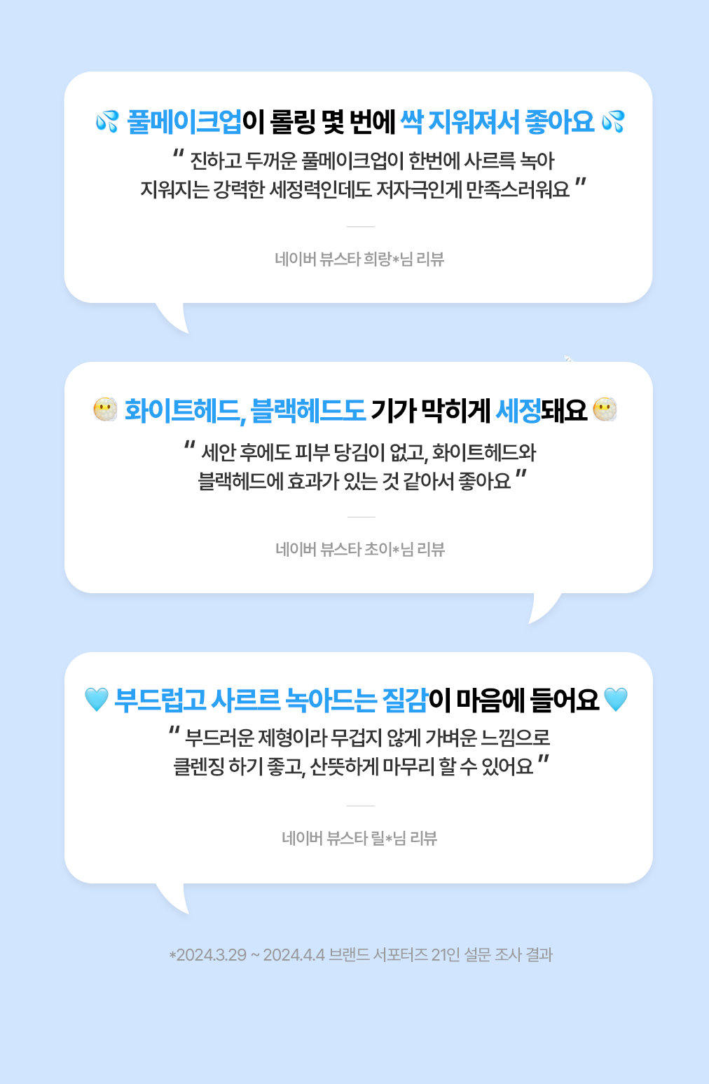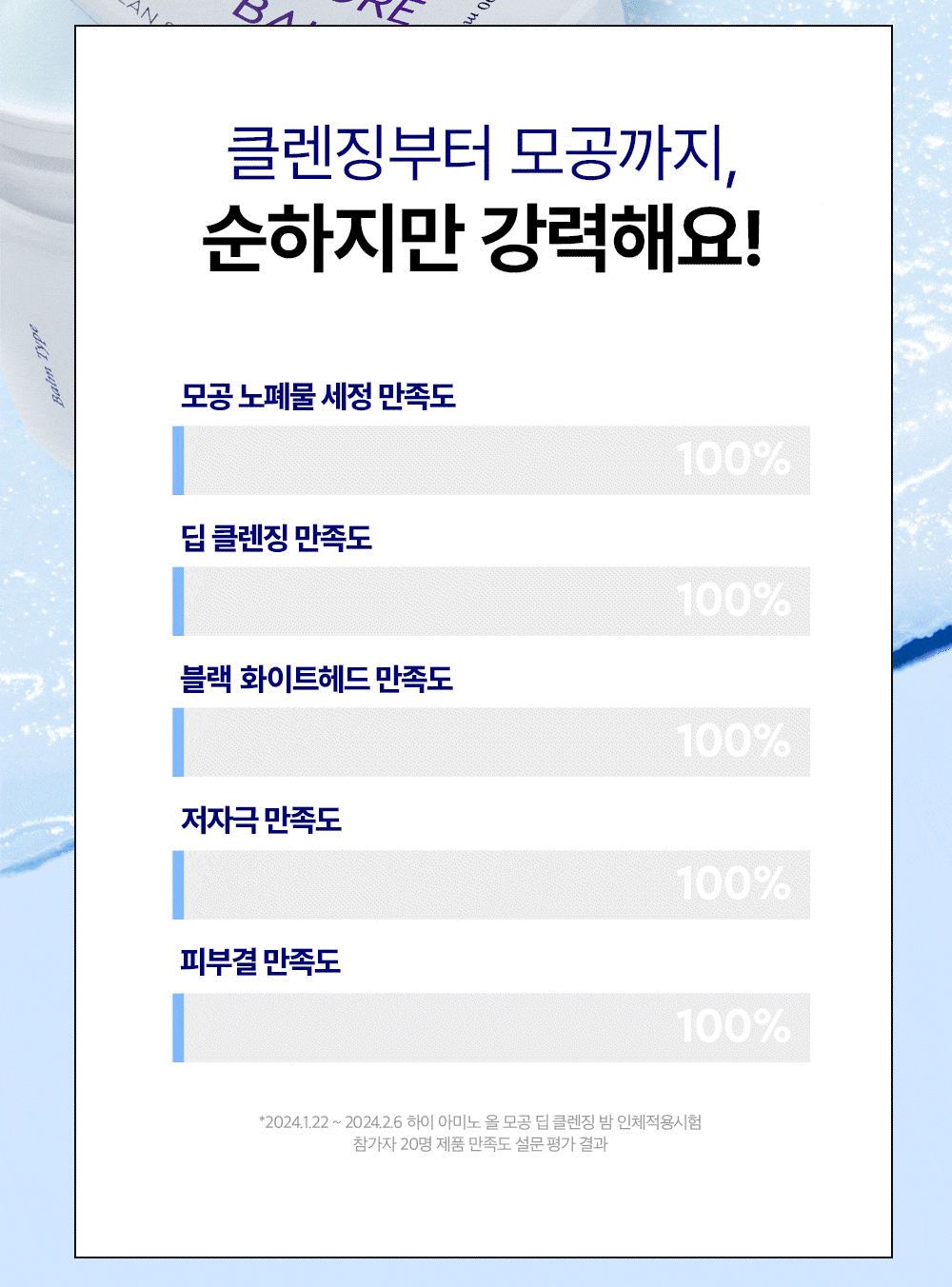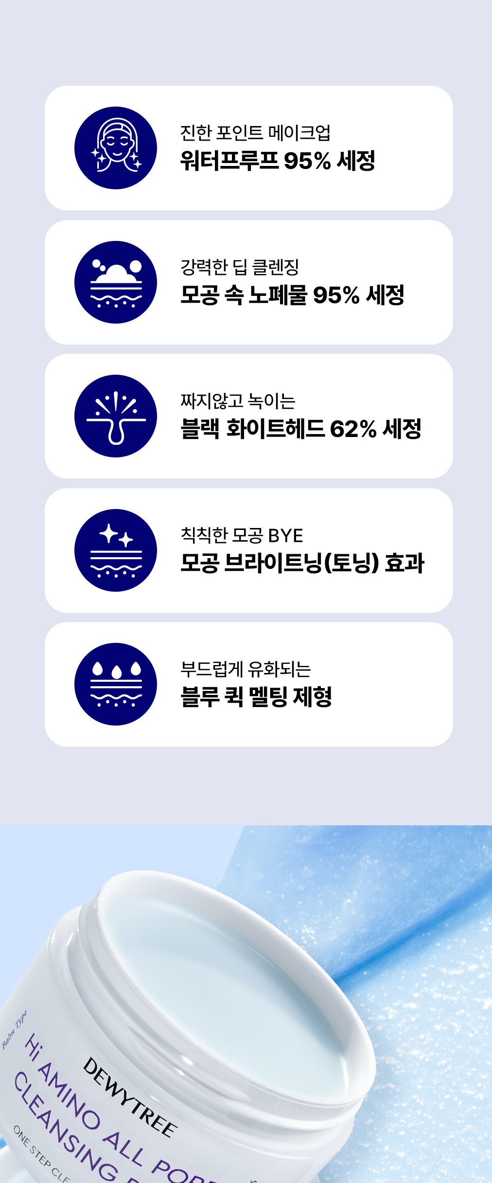 에틸헥실팔미테이트, 솔베스-30테트라올리에이트, 세틸에틸헥사노에이트, 합성왁스, 호호바씨오일, 메도우폼씨오일, 퀸즈랜드넛오일, 카프릴릭/카프릭트라이글리세라이드, 폴리글리세릴-10올리에이트, 실리카다이메틸실릴레이트, 로즈마리잎오일, 정제수, 에틸헥실글리세린, 부틸렌글라이콜, 글루코노락톤, 카프릴로일살리실릭애씨드, 토코페롤, 쌀겨수, 카프릴릴글라이콜, 하이드록시아세토페논, 펜틸렌글라이콜, 구아이아줄렌, 1,2-헥산다이올, 나이아신아마이드, 소듐하이알루로네이트, 만주자작나무수액, 보리지추출물, 수레국화꽃추출물, 마트리카리아꽃추출물, 히아신스전초추출물, 라벤더꽃추출물, 클레리추출물, 프로테아제, 포타슘하이알루로네이트, 쌀아미노산(0.01ppm), 소듐하이알루로네이트크로스폴리머, 소듐아세틸레이티드하이알루로네이트, 하이드록시프로필트라이모늄하이알루로네이트, 하이드롤라이즈드소듐하이알루로네이트, 하이알루로닉애씨드, 하이드롤라이즈드하이알루로닉애씨드, 쌀겨오일 |