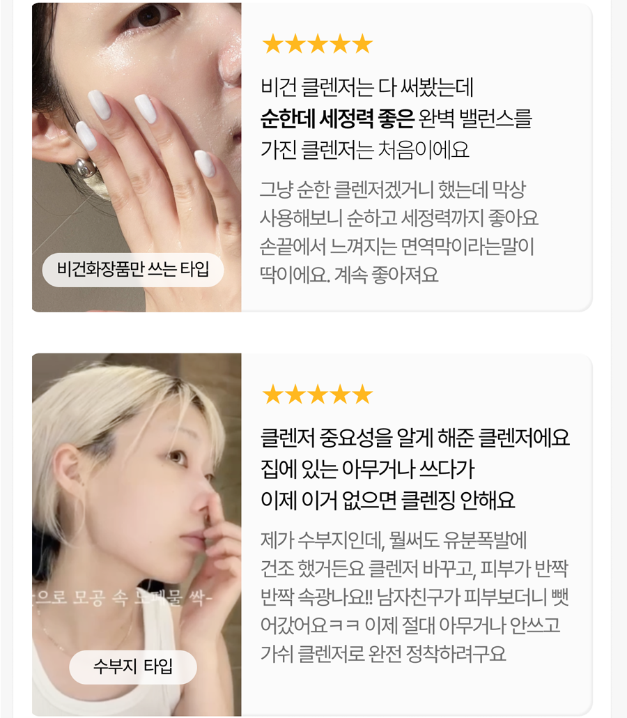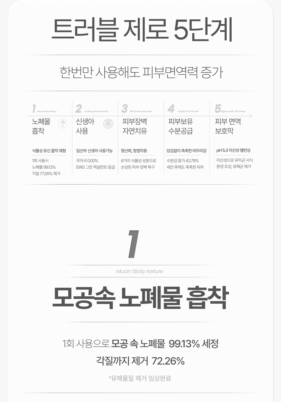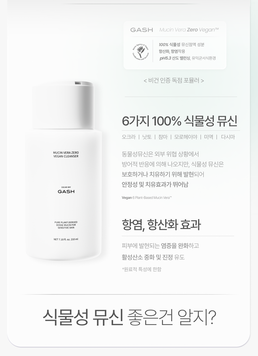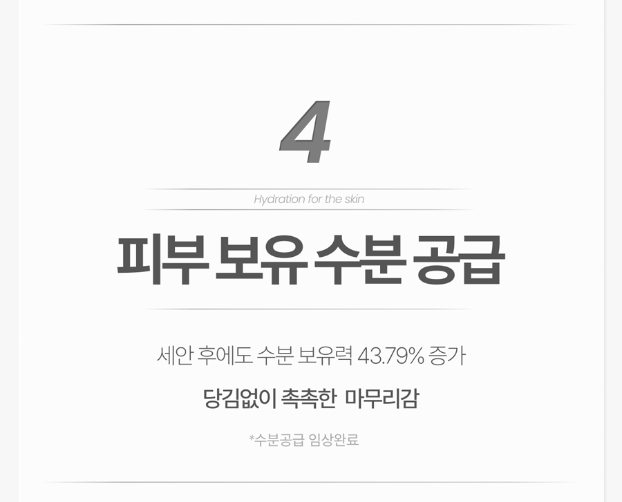정제수, 소듐코코일알라니네이트, 코코-베타인, 글리세린, 1,2-헥산다 이올, 다이소듐코코일글루타메이트, 아크릴레이트/C10-30알킬아크 릴레이트크로스폴리머, 다이프로필렌글라이콜, 라우릴베타인, 부틸렌 글라이콜, 소듐코코일글루타메이트, 코코-글루코사이드, 소듐폴리아 크릴레이트, 카프릴릴글라이콜, 데실글루코사이드, 소듐클로라이드, 소듐메틸코코일타우레이트, 에틸헥실글리세린, 다이소듐이디티에이, 알란토인, 베타인, 미역추출물(50ppm), 참마뿌리추출물(40ppm), 오 크라열매추출물(30ppm), 다시마추출물(20ppm), 시트릭애씨드, 몰로 키아잎추출물(10ppm), 연꽃뿌리추출물(10ppm), 소나무잎추출물, 귀리단백질추출물, 애플민트잎추출물, 녹차추출물, 마트리카리아꽃추 출물, 라벤더꽃추출물, 레몬밤잎추출물, 마조람잎추출물, 로즈마리잎 추출물, 살비아잎추출물, 타임잎추출물,타임추출물, 폴리글루타믹애 씨드 |